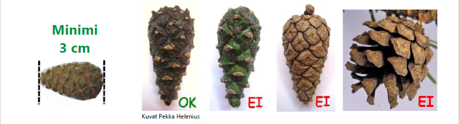 - Alle 3 cm:n pituisia käpyjä ei kerätä.