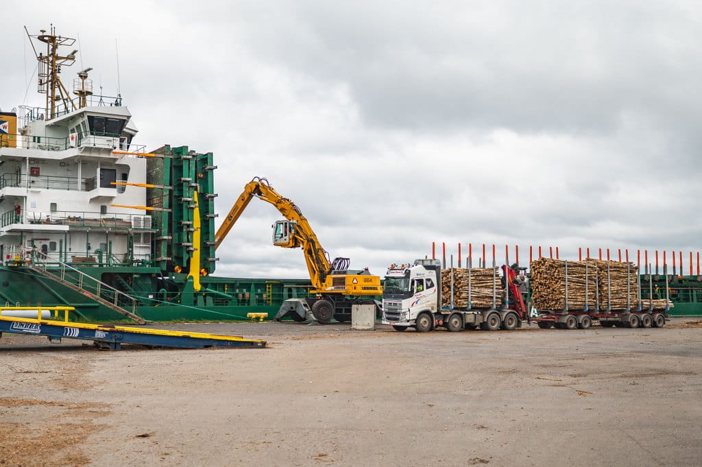Resan fortsatte sedan vidare till Björnö djuphamn i Kristinestad, där exportverksamheten konkretiserades. Ett lastfartyg rymmer cirka 6 000 m³ virke, och upp till 6 000 m³ kan lastas på 24 timmar. Maximal lastningstid är 36 timmar innan avfärd.
