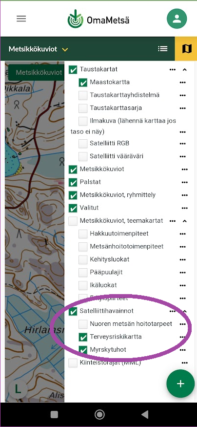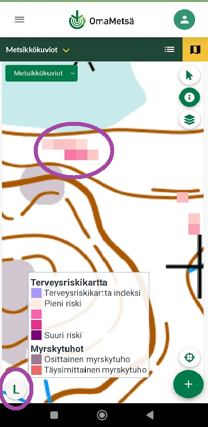 ”Hienoa uusissa karttatasoissa on se, että tekoäly osaa tulkita muutosta satelliittiaineistoissa ihmissilmää nopeammin ja luotettavammin. Merkintä metsien terveyden heikkenemisestä tulee näkyville OmaMetsän kartalle jo aiemmin, kuin metsässä välttämättä näkyy ihmissilmällä havaittavia muutoksia,” OmaMetsän kehittämispäällikkö Juha Laitinen kertoo.