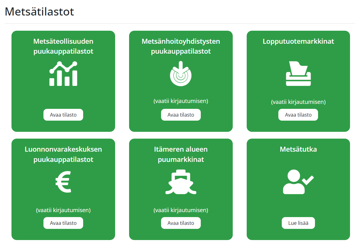 MTK on uudistanut Metsätilastot-palvelun, joka tuo metsänomistajille ajankohtaista markkinatietoa ja työkaluja puukaupan suunnitteluun. Uudistus sisältää oman sivuston, selkeät ikonit ja monipuoliset datapalvelut, jotka tukevat metsänomistajien päätöksentekoa. MTK Jäsenet mobiilisovelluksessa voi nyt myös vertailla lopputuotemarkkinoita puun hintakehitykseen. Palvelukokonaisuus on kaikkien MTK:n ja metsänhoitoyhdistyksien jäsenten hyödynnettävissä.