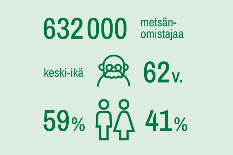 Suomessa joka 9. henkilö on metsänomistaja. Heistä noin puolet, 347 000, omistaa vähintään 2 hehtaarin metsätilan. Metsänomistajien keski-ikä on 62 vuotta ja heistä 41 prosenttia on naisia. Metsätilojen keskikoko on 48 hehtaaria.