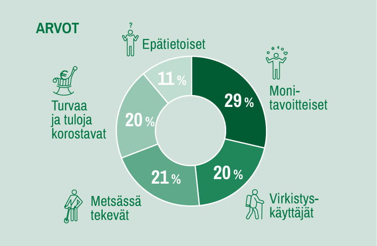 Metsänomistajien arvot ovat moninaisia ja vaihtelevat muun muassa metsän sijainnin, omistajan taustan, arvojen ja elämäntilanteen mukaan. Ne voidaan jakaa taloudellisiin, aineettomiin (mm. virkistyskäyttö ja luontoarvot) ja monitavoitteisiin. Esimerkiksi puuntuotantoa voidaan harjoittaa tavalla, joka huomioi myös maisema- ja luontoarvot.