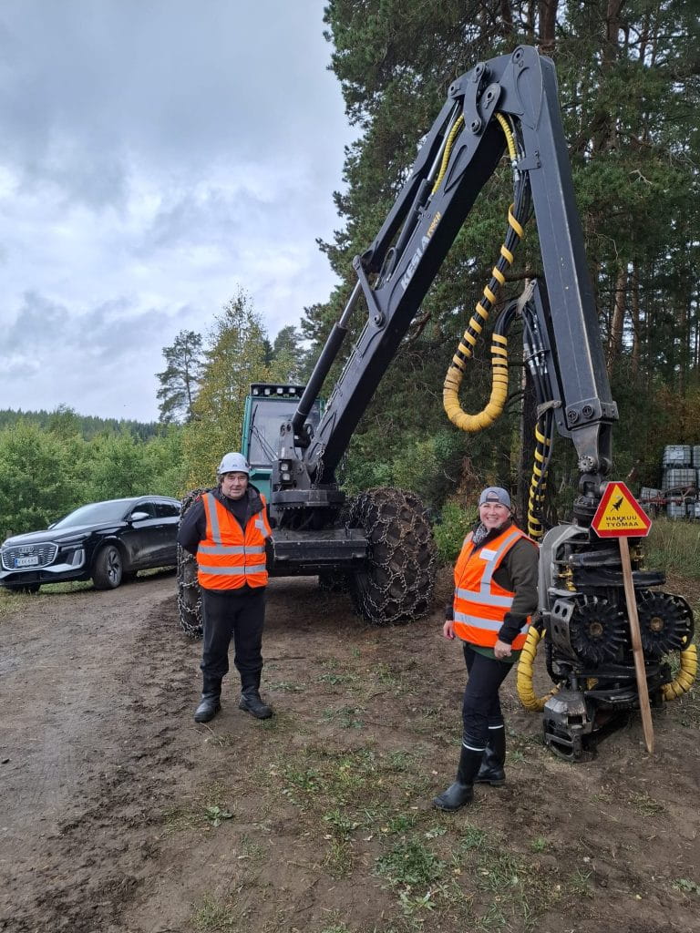 Sopimusyrittäjämme Heikki Leinonen (vas.) esitteli motoa ja kertoi työskentelystä metsässä.
