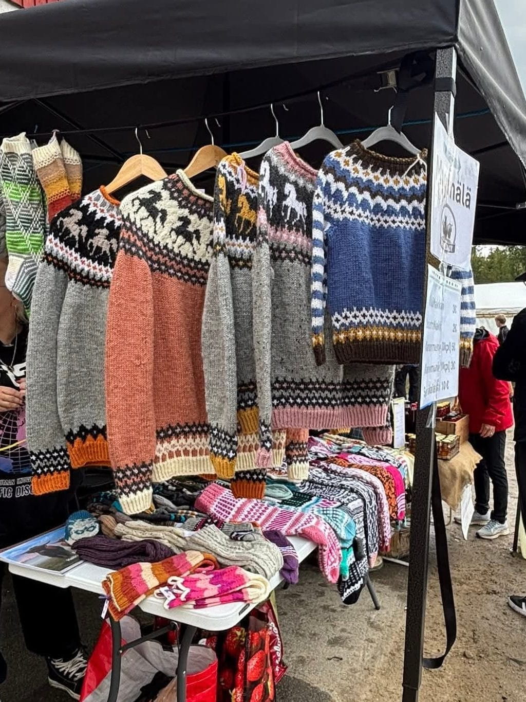 Myös upeita ja lämpimiä käsitöitä oli tarjolla.