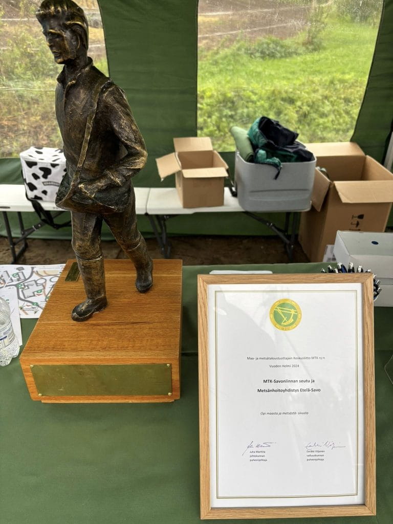 Etelä-Savon vuoden Helmi palkintoa, joka saatiin opimaastajametsasta.fi verkkosivustosta.